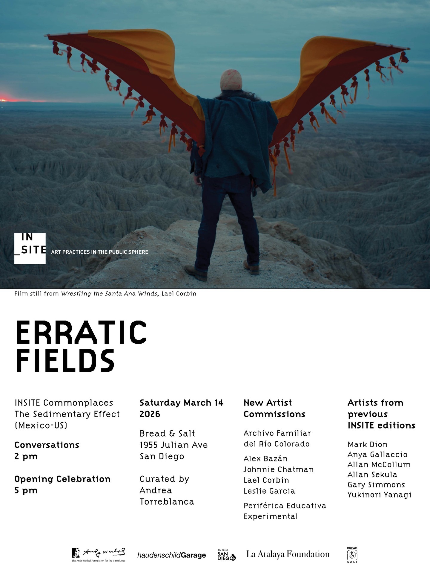 Conceived by INSITE’s Chief Curator/Editor Andrea Torreblanca, 'Erratic Fields' is the exhibition component of the second chapter of 'The Sedimentary Effect', an ongoing curatorial project that examines spiritual, ecological, and architectural microhistories of the Southern California and Baja California region.